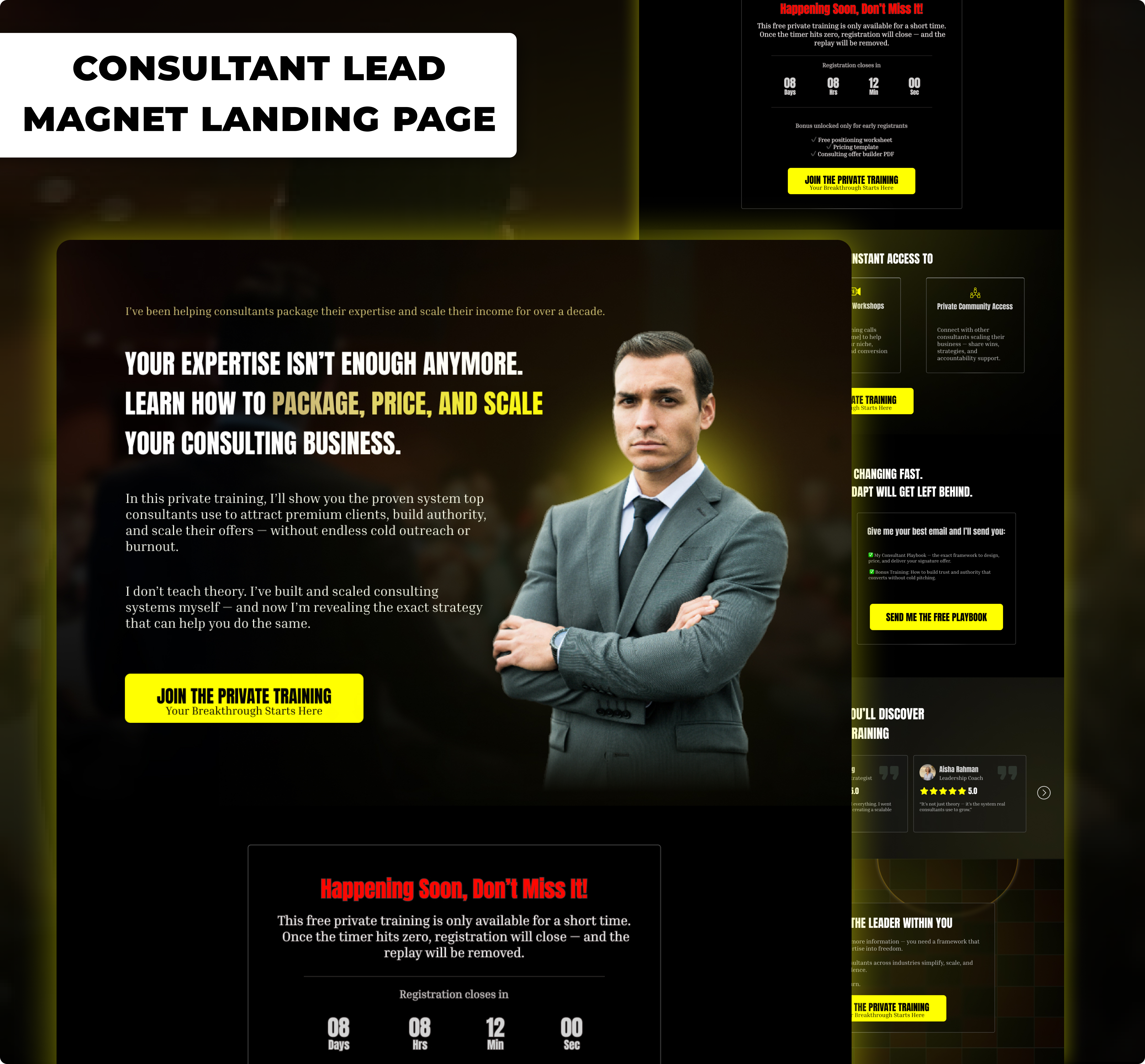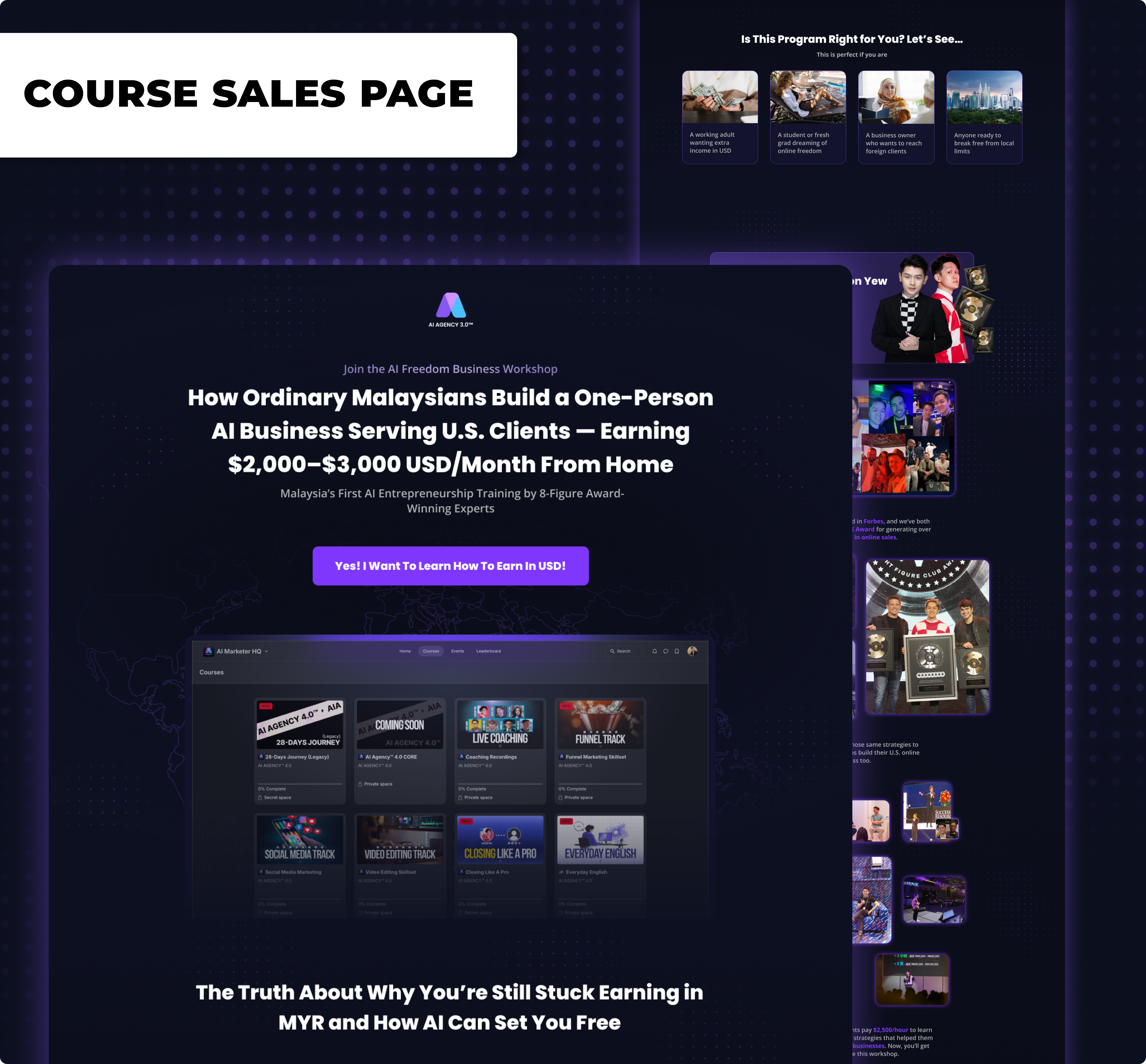 I design in Figma and build on Automaticsales.ai, GoHighLevel, ClickFunnels, Systeme.io, Webflow, or your preferred platform.