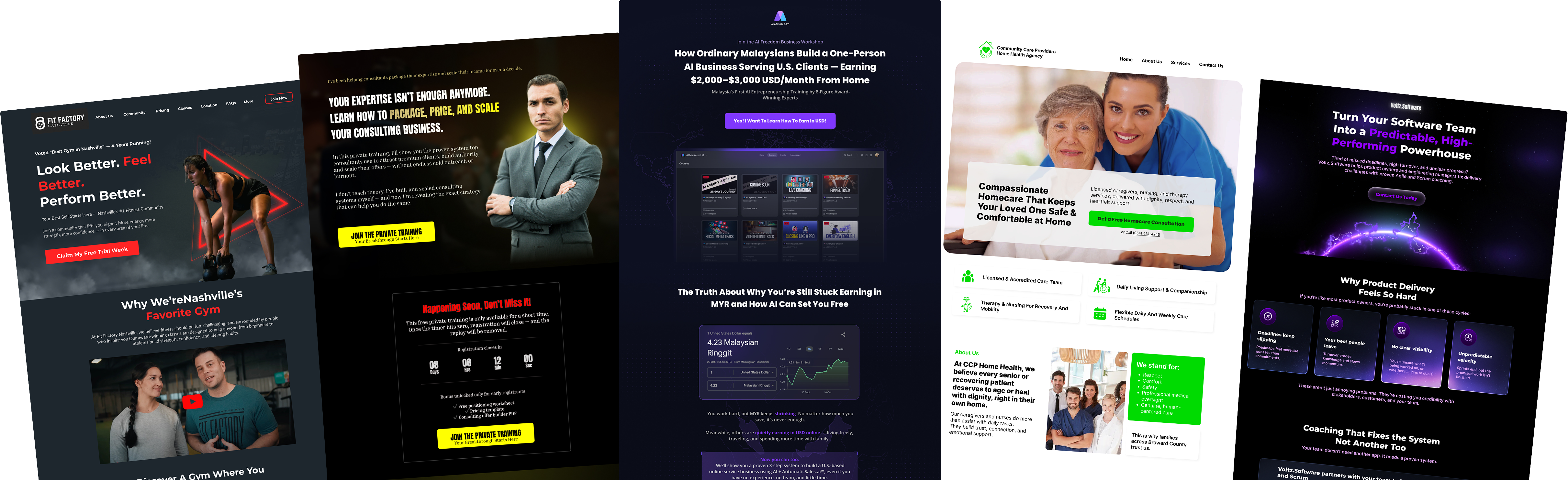 I design in Figma and build on Automaticsales.ai, GoHighLevel, ClickFunnels, Systeme.io, Webflow, or your preferred platform.